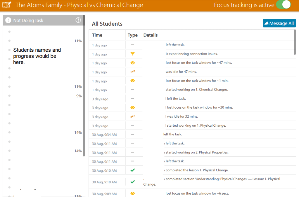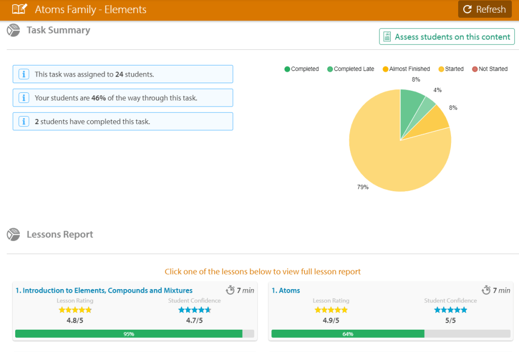 - Tasks and Homework – if a smart lesson is assigned to a class Education Perfect will enable focus tracking, rate student learning and show submission of responses.